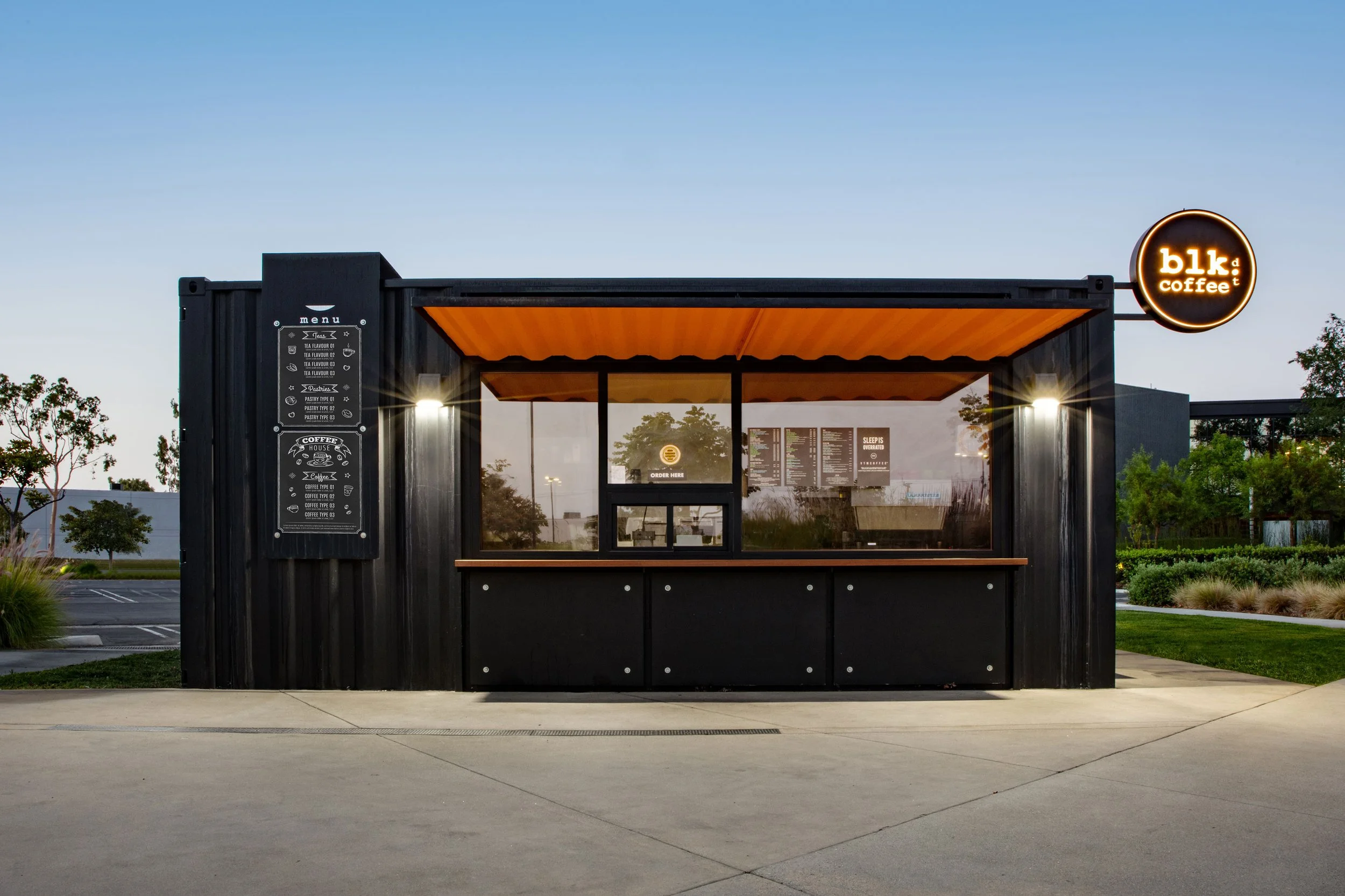 Eager to attract attention to their latest retail location, Blk Dot, a quickly growing local coffee cafe, engaged Local Brand Studio to work with the architectural container concept to draw attention and therefore business to fuel this latest venture.